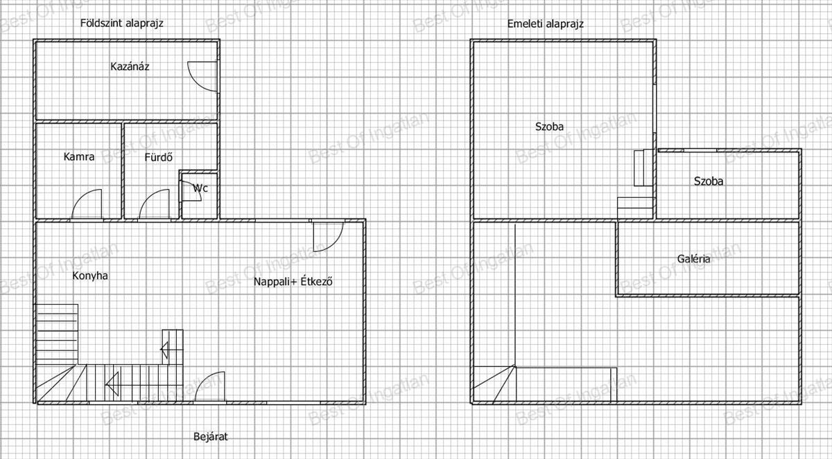 A ház szinteltolásos, földszint: 38, 82-m2-es, a tetőtér  27, 71 m2-es, a hozzá tartozó telek: 1298 m2-es.