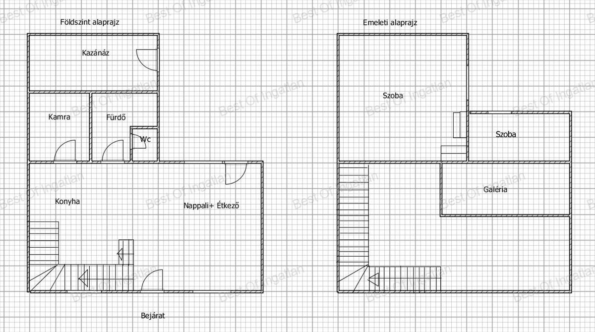 Az emeleten egy galéria és egy hálószoba található.