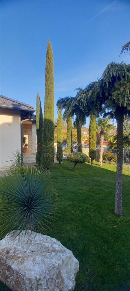 Az 1830 m2-es gyönyörűen karbantartott, parkosított, trópusi, mediterrán hangulatú telken a ház mellett egy medence, egy kazánház és egy fedett tároló is helyet kapott.
