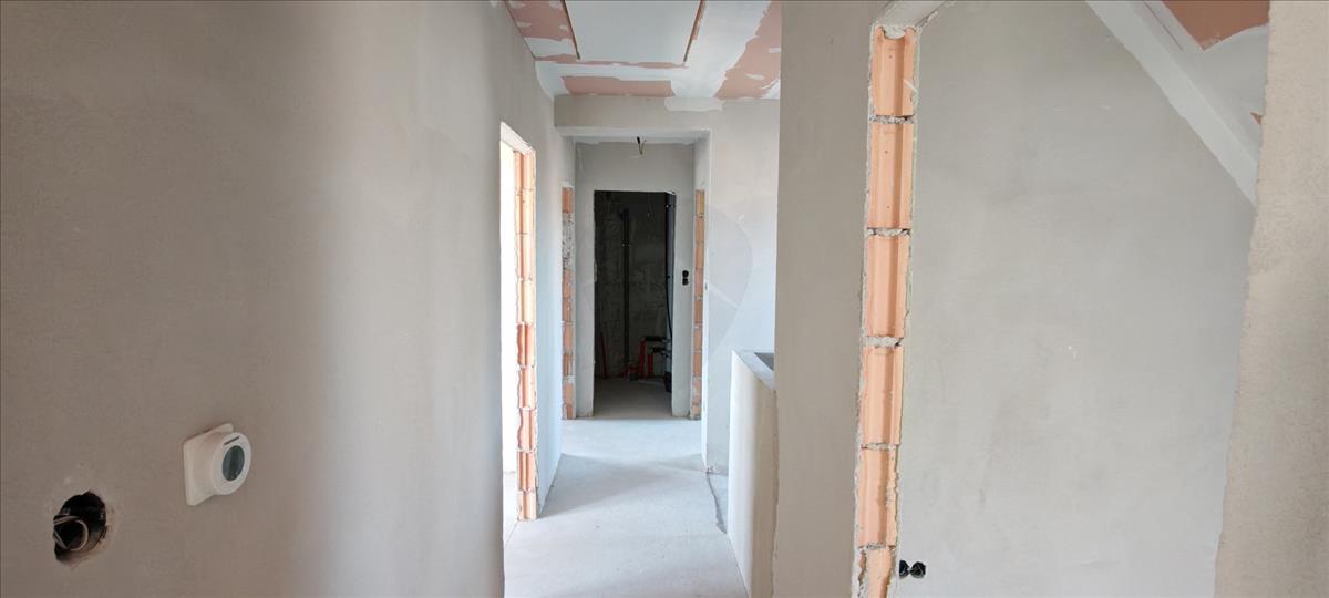 A lakóépület jelenlegi készültségi szintje emelt szintű fűtéskész állapotú, továbbá az ingatlan vételára tartalmazza a 300 m2-es telekrészt, a felépítményt, a kerítést, az épített kukatárolót, 3 db gépkocsi parkolót, szegélyezett tereprendezést, térburkolatokat és járdákat, az önálló közüzemi mérőórákat, valamint a lenti leírásban olvasható műszaki tartalmat.