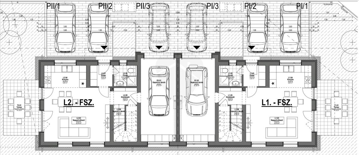 - udvari járdák és 3-3 db gépkocsi beálló térburkoltak (Leier beton térburkolat)