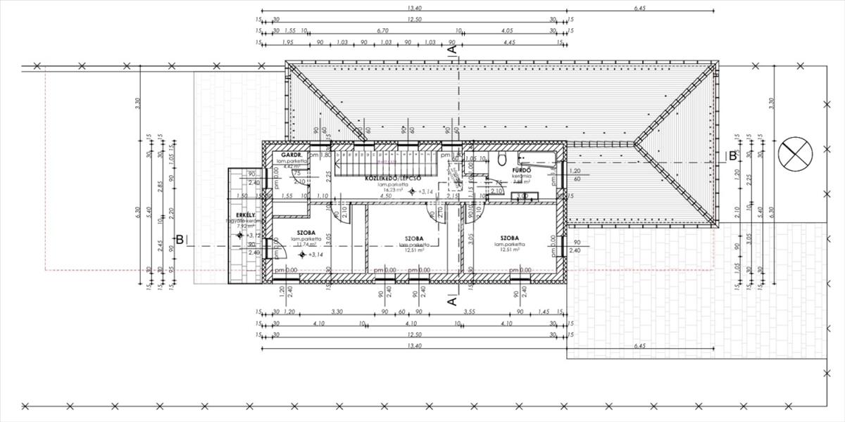 Emelet nettó alapterület: 65, 24 m²+8 nm terasz.