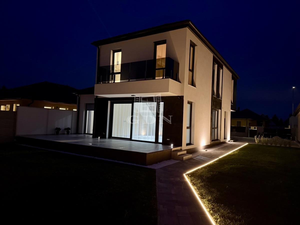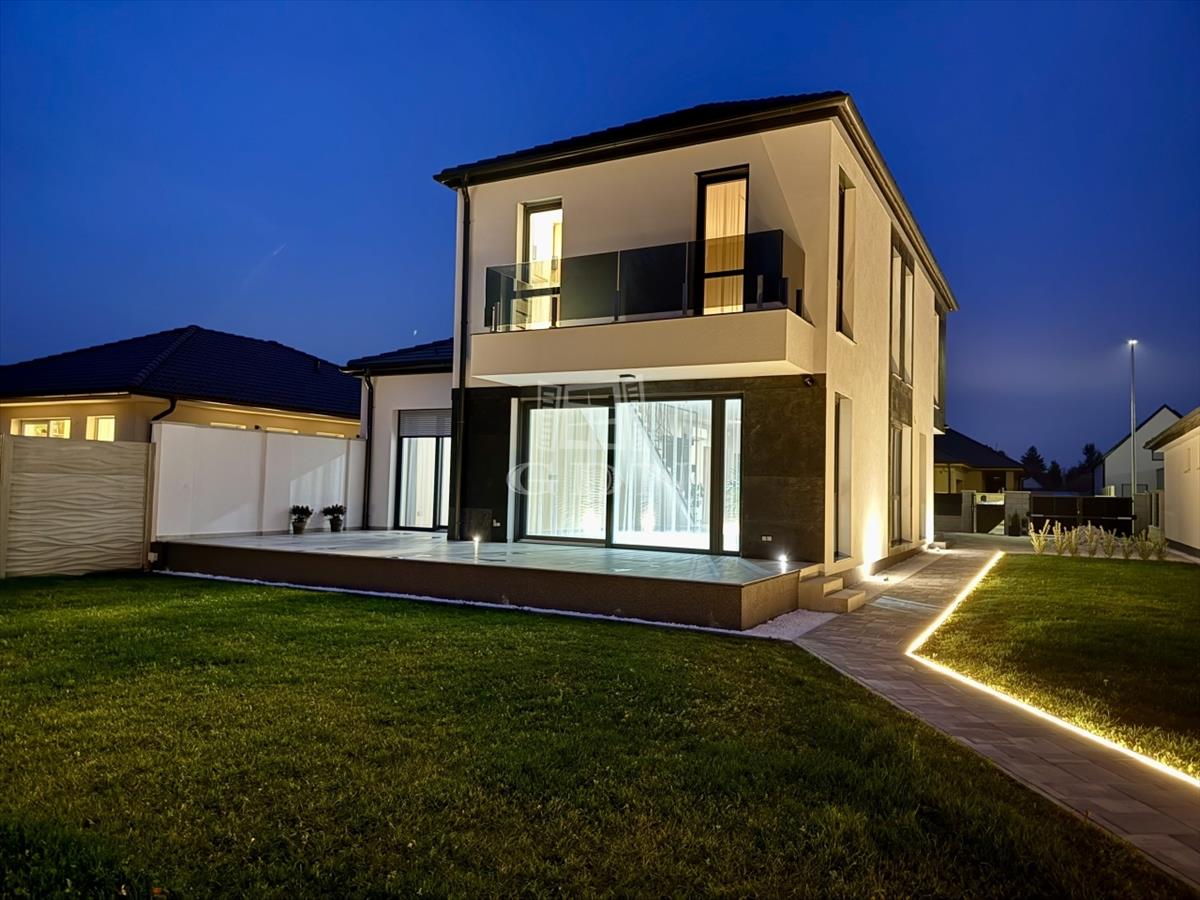 Győr-Ménfőcsanak egyik legnyugodtabb, forgalomtól mentes új zsákutcájában, 600 m²-es telken kínáljuk ezt a kompromisszummentes, minden igényt kielégítő luxus okosházat.