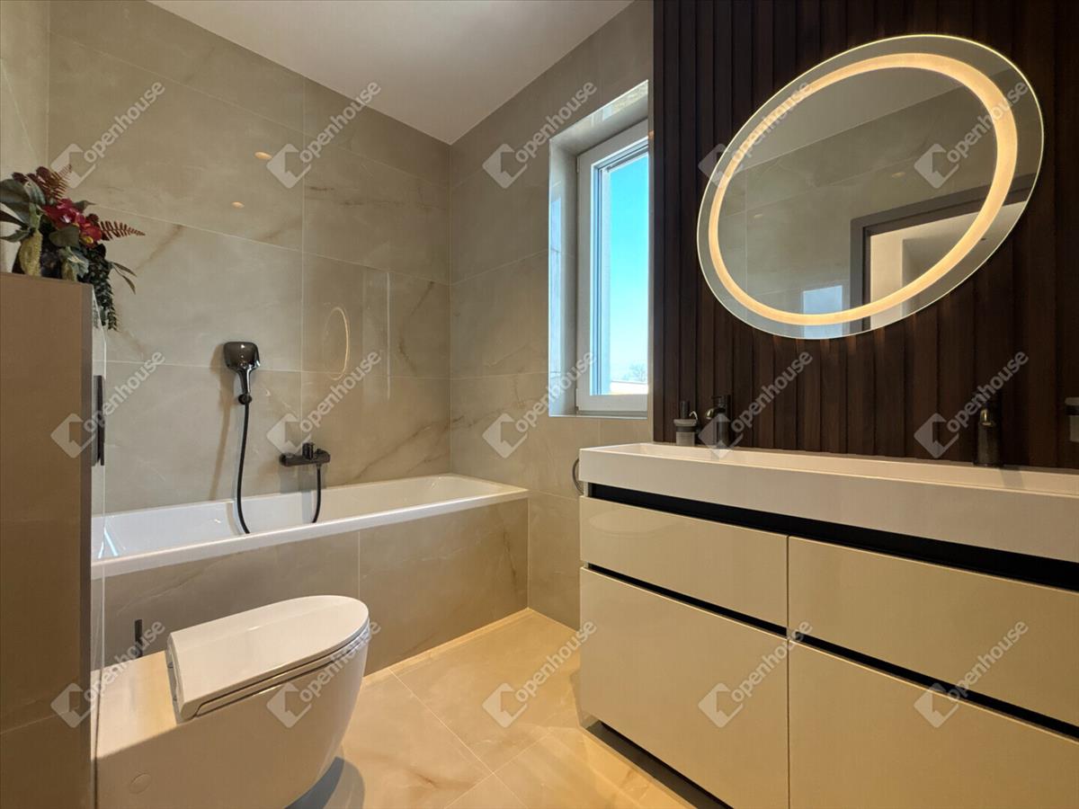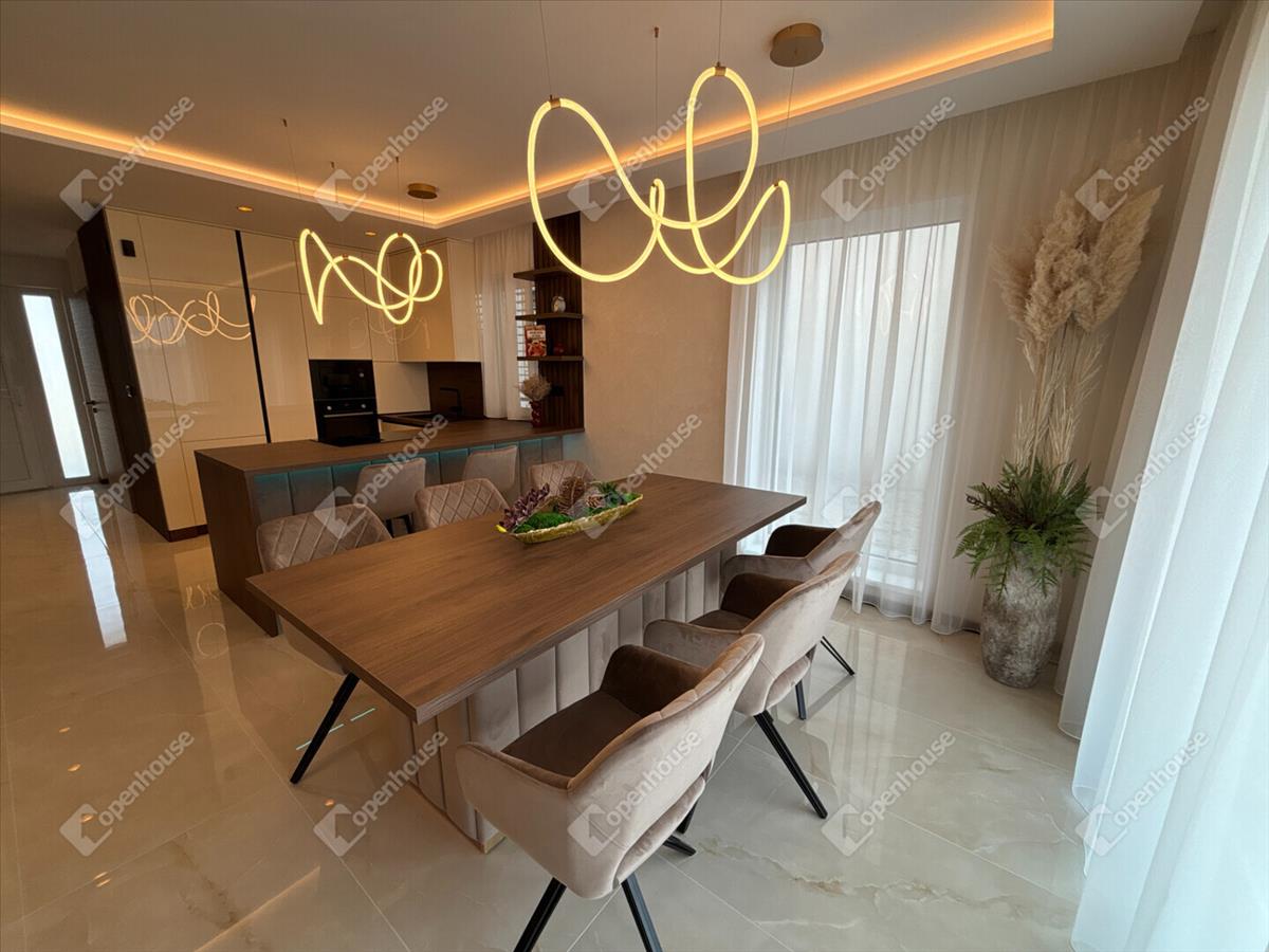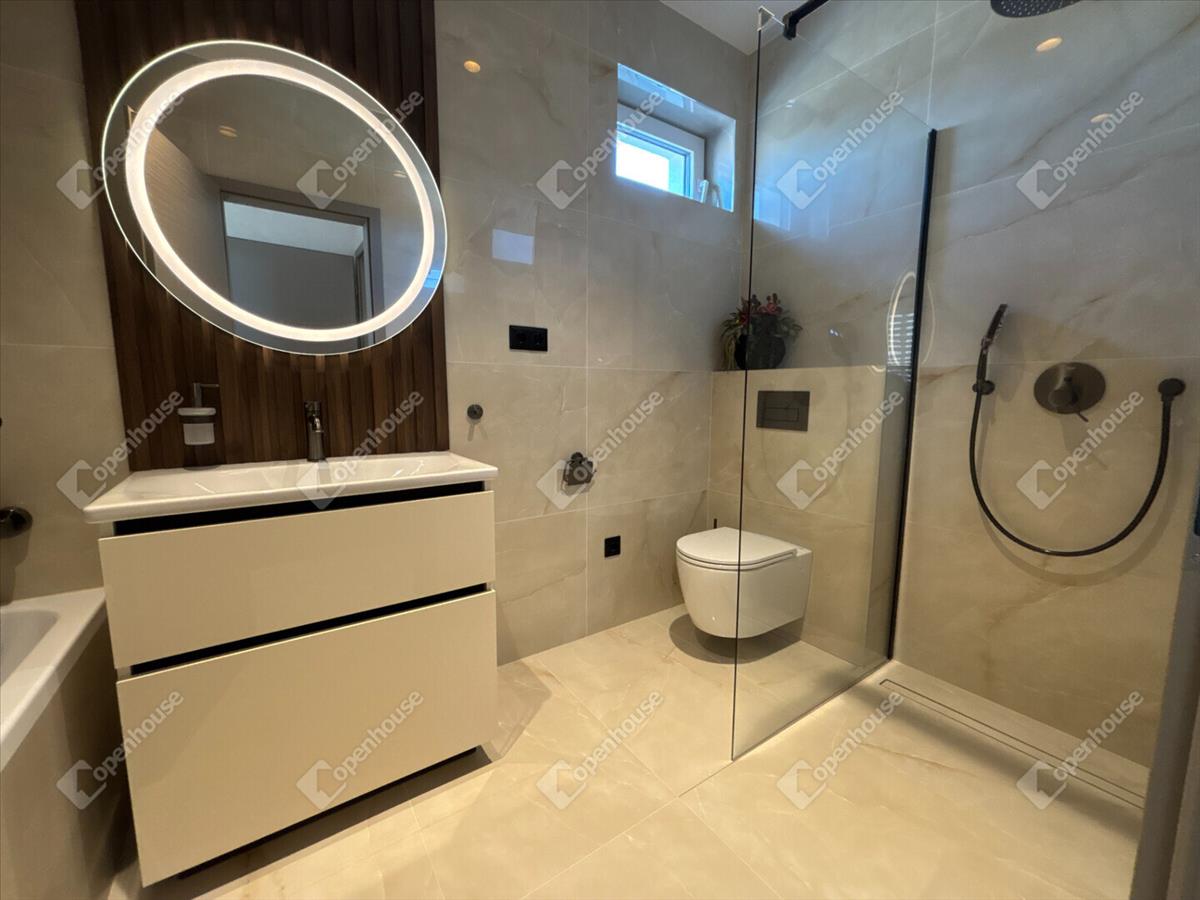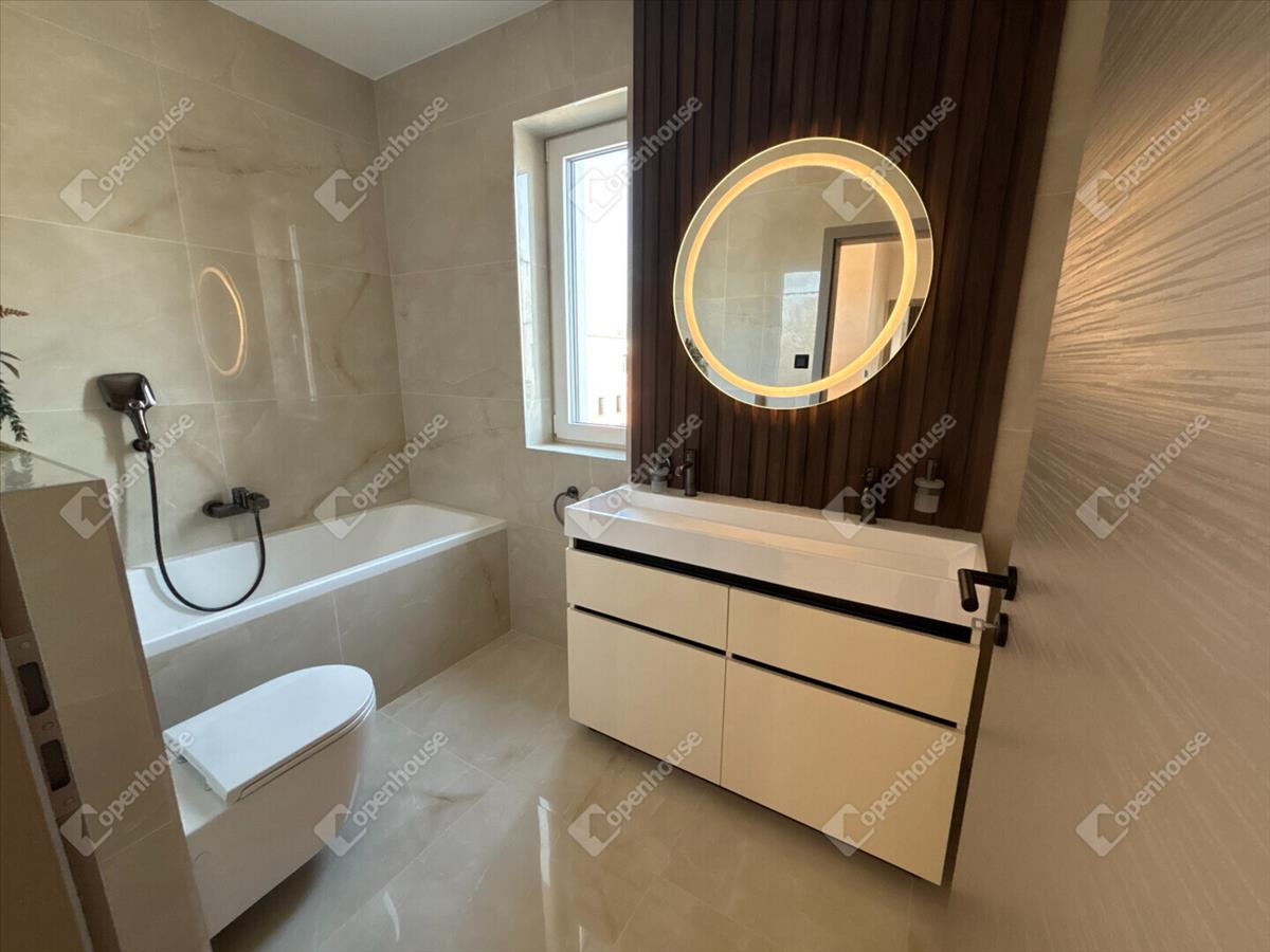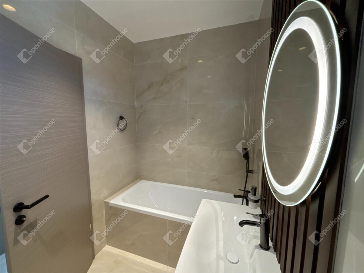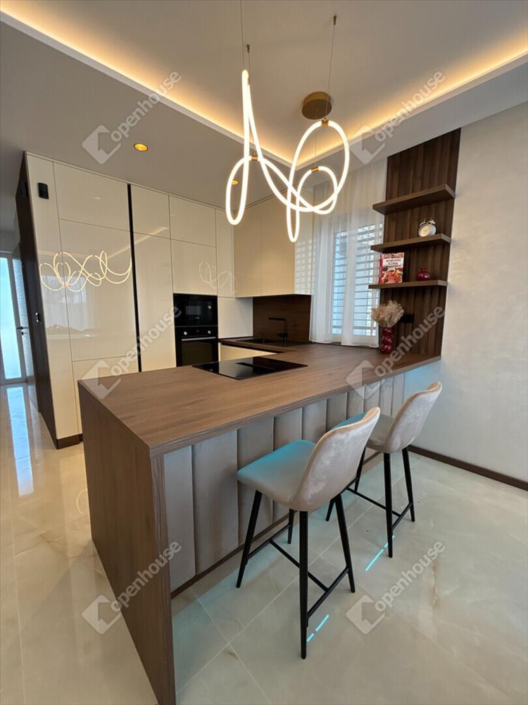 A konyha teljes mértékben gépesített, a nappali és a közösségi terek magas minőségű burkolatokkal és egyedi világítási megoldásokkal készültek. a fürdőszobák szintén igényes kialakításúak, modern szaniterekkel és design elemekkel.