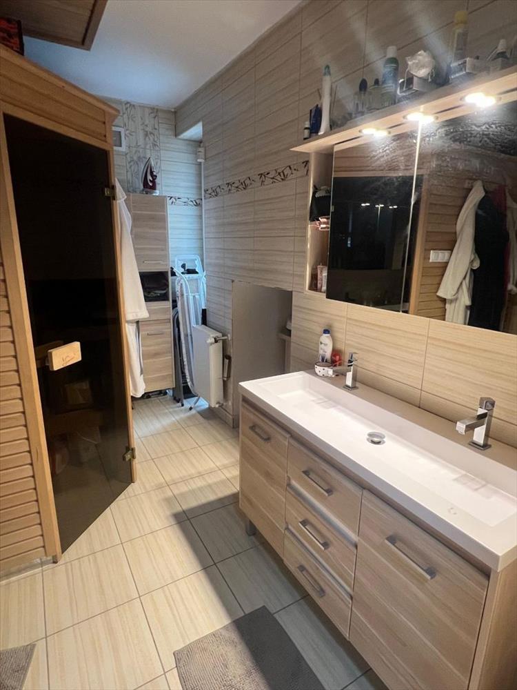 Az emeleten három hálószobán kívül egy kádas, zuhanyzós fürdőszoba, valamint egy a fő hálószobából - ahonnan az emeleti teraszra is kijuthatunk - megközelíthető gardrób szoba helyezkedik el.