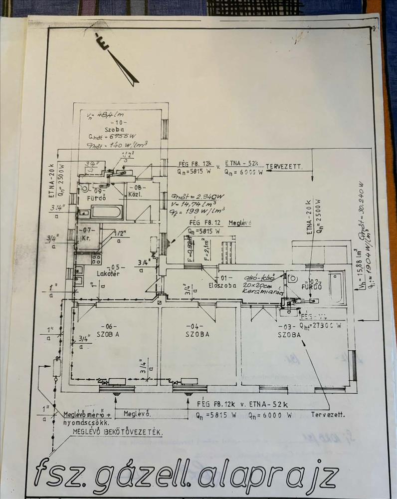 Elosztása négy nagy méretű szoba, tágas konyha étkező, előszoba, két fürdőszoba és 30 m2 nagyságú pince.