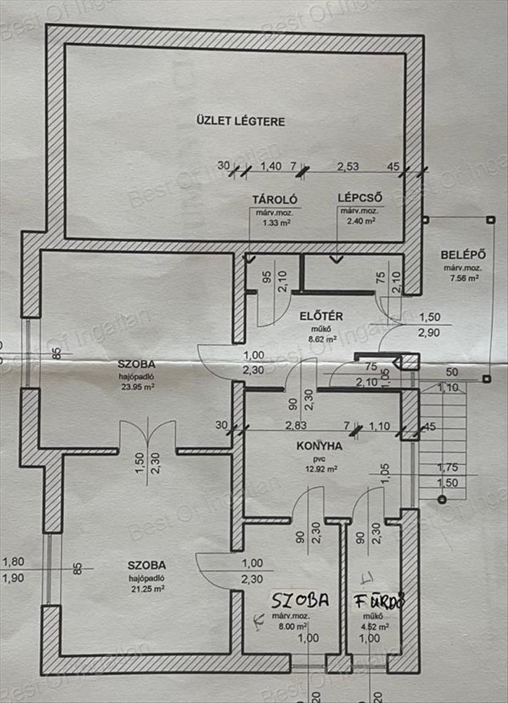 Mérete, elhelyezkedése, utcafronti megközelíthetősége miatt akár három külön lakóegység, vagy üzlethelyiség kialakítására is alkalmas.