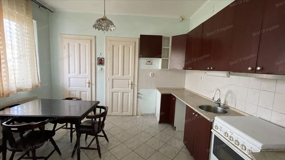 Az emeleti lakótér (belső udvarról közelíthető meg) elosztása: közlekedő, külön wc, fürdőszoba + wc, konyha, 3 egymásból nyíló szoba