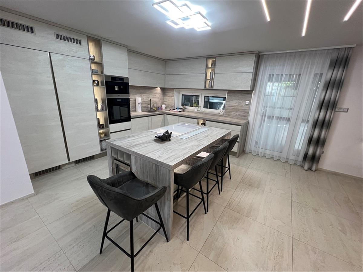 Győr-Bácsa rendkívül kedvelt, csendes részén, szinte átmenő forgalommentes utcában, újszerű családi házak környezetében, az Ergényi lakótelepen, 440 m2-es összközműves telken lévő, 2022-ben teljes felújításon átesett, amerikai konyha - étkező – nappali + 3 hálószobás, továbbá méretes háztartási helyiséggel is felszerelt, duplakomfortos (szintenként 2 db fürdőszoba – WC-vel, valamint privát fürdőszobával is berendezett) klimatizált, 150 m2 hasznos alapterületű, prémium minőségben kivitelezett családi ház, 74, 9 m2-es wellness terasszal, 4, 41 m2-es erkéllyel, 19, 14 m2-es garázzsal, és 49, 08 m2-es fedett gépkocsibeállóval és napelem rendszerrel eladó.