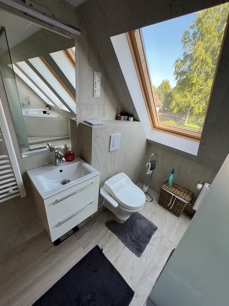 - szintenként fürdőszoba – wc, szülői hálószobában további privát fürdőszoba, wellness teraszon további zuhanyzó és különálló wc (összesen 4), stb.