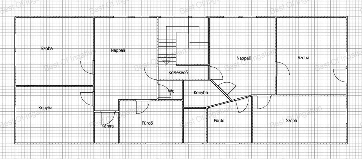 - a tágas ingatlan kisebb átalakítással akár egybe is nyitható, összesen 10 szobából, 4 konyhából, 4 fürdőszobából áll