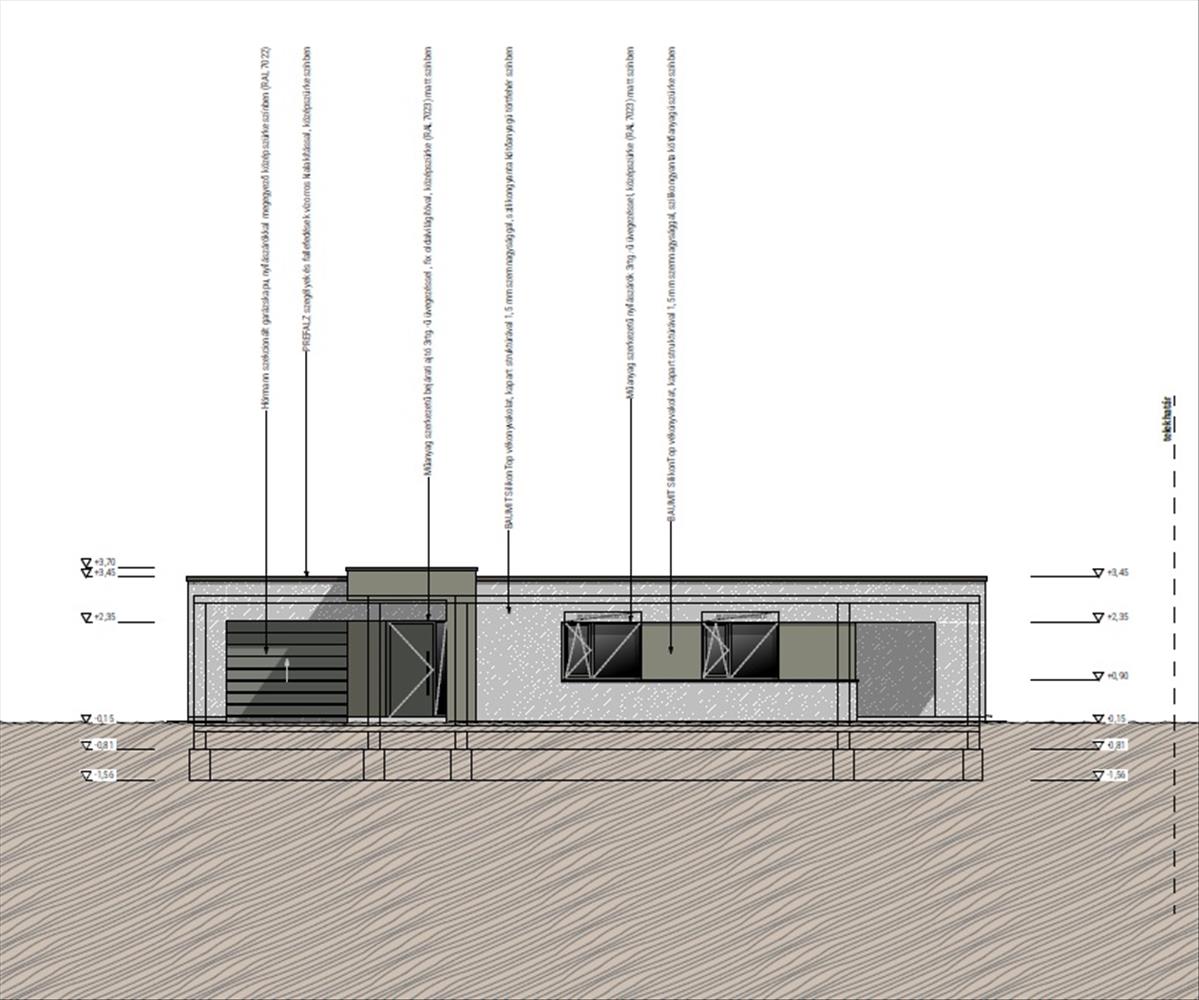 Az ingatlan Porotherm 30 n+f főfalakkal, 15 cm homlokzati hőszigeteléssel, monolit vasbeton födémmel, lapostetővel épül. 3 Rétegű üvegezéssel ellátott Internorm típusú, kívül alumínium műanyag nyílászárók kerülnek beépítésre kívül antracit, belül fehér színben, rejtett redőnytokkal, valamint magas minőségű Schlotterer alumínium elektromos redőnnyel. a bejárati ajtó szintén alumínium, 5 ponton záródó Internorm ajtó. a garázs Hörmann típusú szekcionált, antracit színű kapuval, motoros vezérléssel nyílik.
