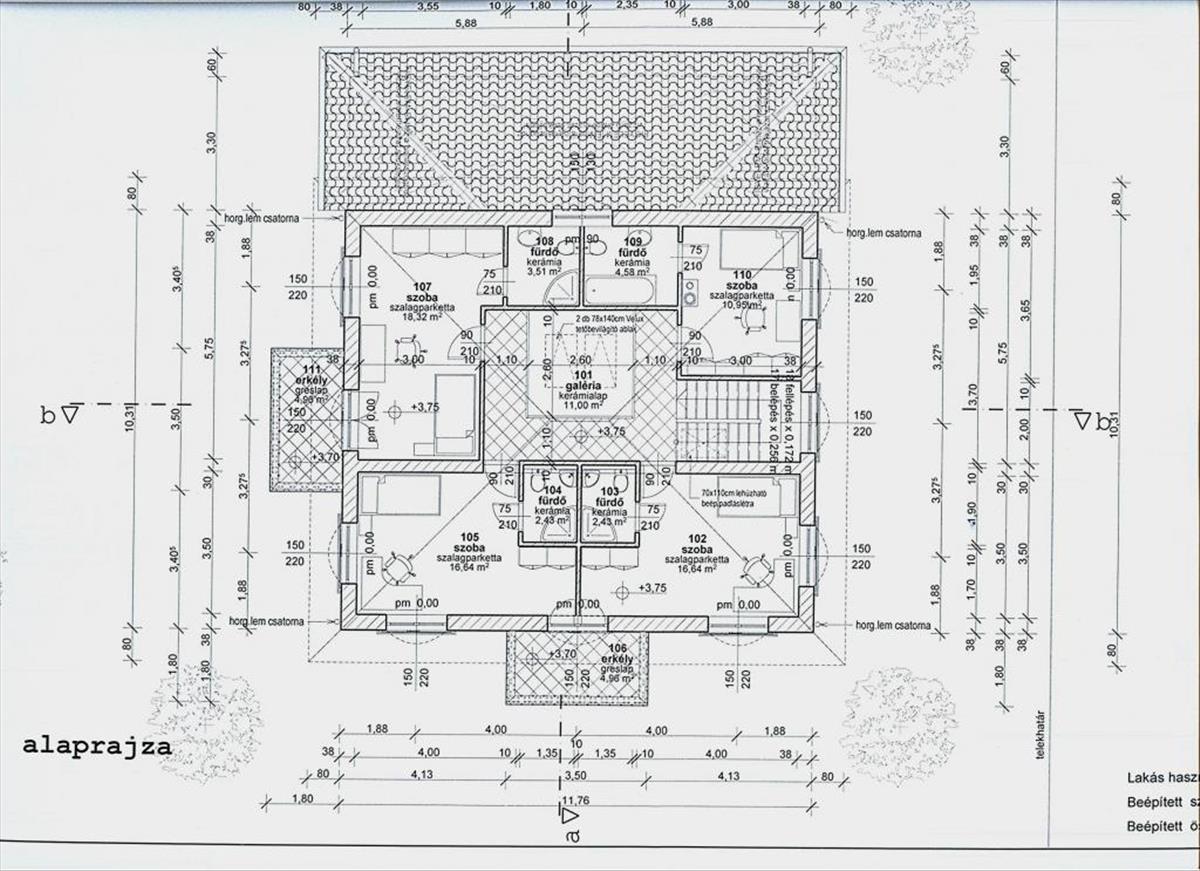 A földszinti lakótér nettó 98, 97 nm , melyhez + 28, 27 nm udvari terasz és + 33, 12 nm -es kétbeállásos garázs kapcsolódik, míg az emelet nettó 86, 5 nm alapterületű, melyhez 2 erkély tartozik (2 x 4, 96 nm ).