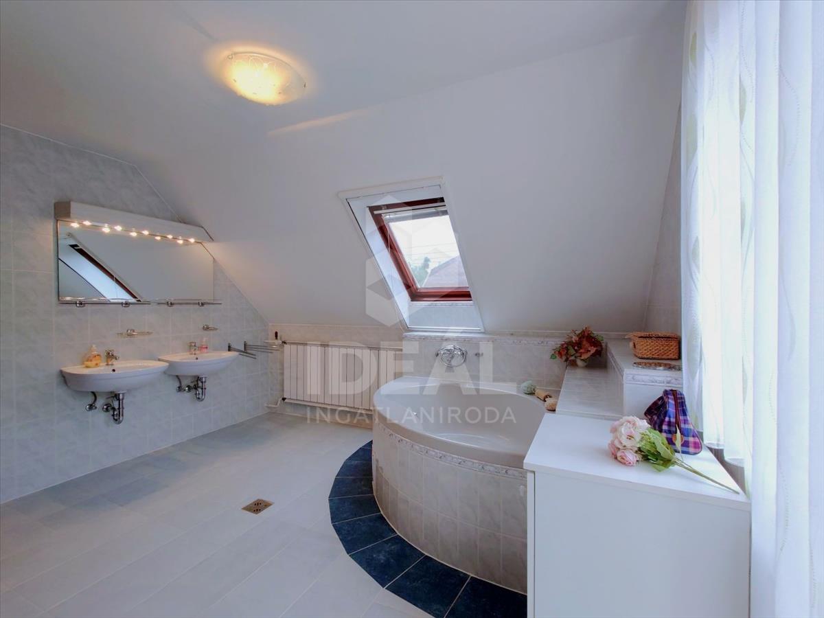 Az ingatlanhoz elektromos Hörmann kapuval felszerelt dupla garázs és egy lakható szuterén is tartozik.