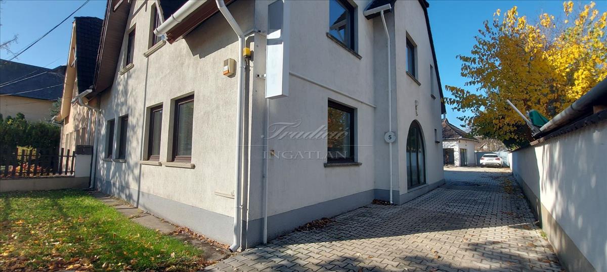 Az ingatlan jelenleg irodaházként működik, de nagyobb család részére is kitűnő életteret nyújt. a telek nagy része térkővel burkolt, ahol 6 autó parkolására van lehetőség. a garázs egy raktárhoz/üzlethelyiséghez kapcsolódik, melynek tetőtere is beépített.