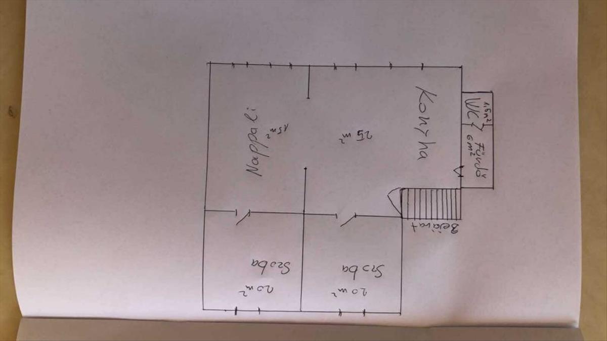 Tagolása: előszoba, amerikai konyhás nappali étkezővel, szoba, szoba, fürdőszoba wc-vel