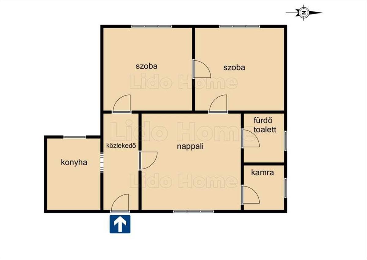 -87 nm , beosztása: 2 szoba, nappali, konyha, fürdő és toalett, kamra, közlekedő.