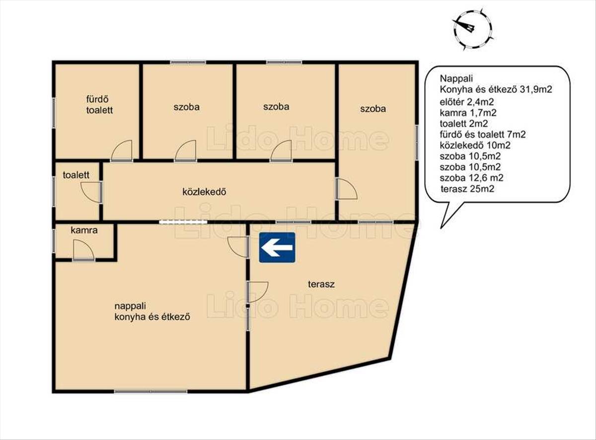 -89 nm , beosztása: 1+2 fél szoba, konyha-nappali-étkező, fürdő és toalett, toalett, kamra, közlekedő, előtér.