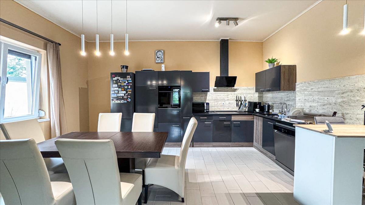 A főépület nettó alapterülete 150, 7 m², kényelmesen elrendezett helyiségekkel, mint a nappali + konyha + étkező (49, 4 m²). Emellett egy 32 m²-es pince és egy 23, 5 m²-es fedett terasz is rendelkezésre áll.