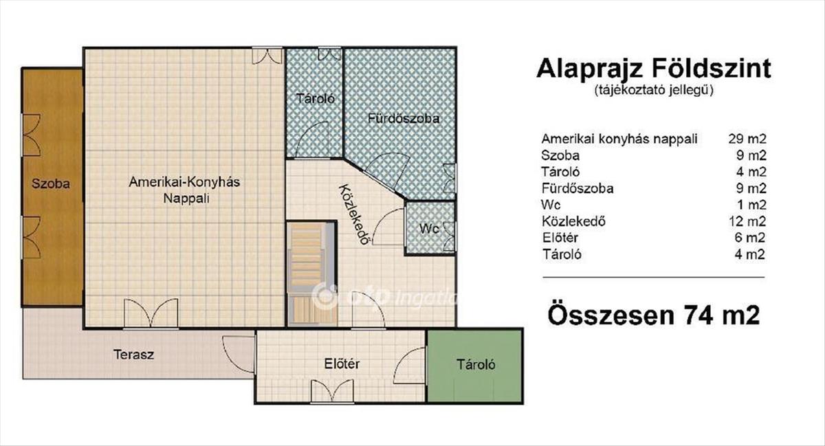 -Földszint: 1 szoba + tágas, világos amerikai konyhás nappali