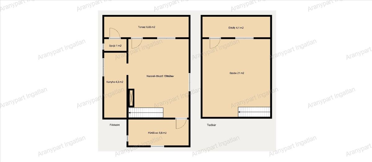 Elosztása: földszint: nappali-étkező, konyha, fürdő, spejz, terasz
