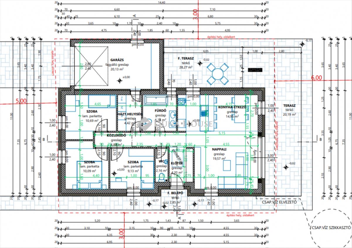 - Telek : 498 nm, 108, 46 nm lakótér + 48, 46 nm terasz