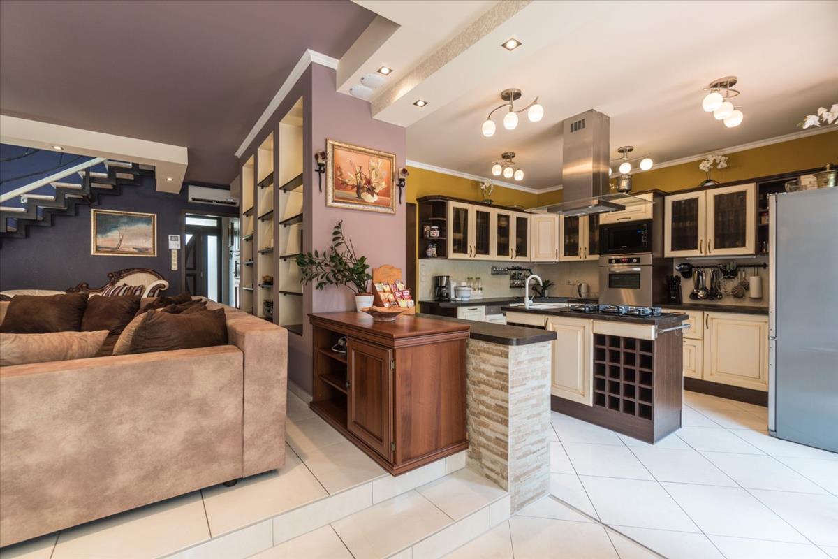 Az egész házat átívelő elegáns, klasszikus stílusjegyek valamennyi szobában, közlekedő térben és helyiségben visszaköszönnek. a műalkotás jellegű tapéták, kovácsoltvas lépcsőkorlát, és valódi fa lakberendezési elemek teszik egyedivé az ingatlan minden szegletét.