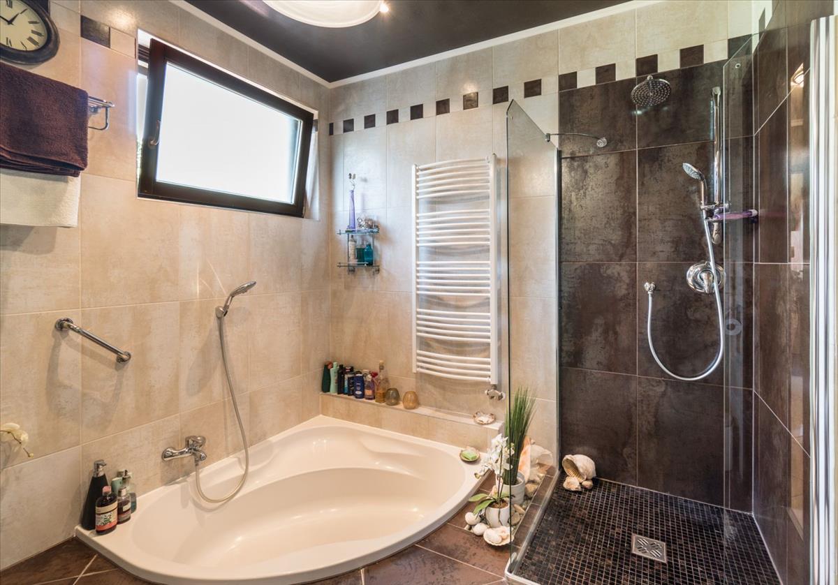 A hálószobákhoz tartozó külön fürdőszobák olasz és spanyol felső-kategóriás burkolattal, Ravak kádakkal, zuhanyokkal, prémium minőségű szaniterekkel, Kludi, Hansgrohe csaptelepekkel felszereltek.