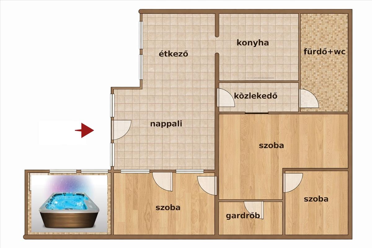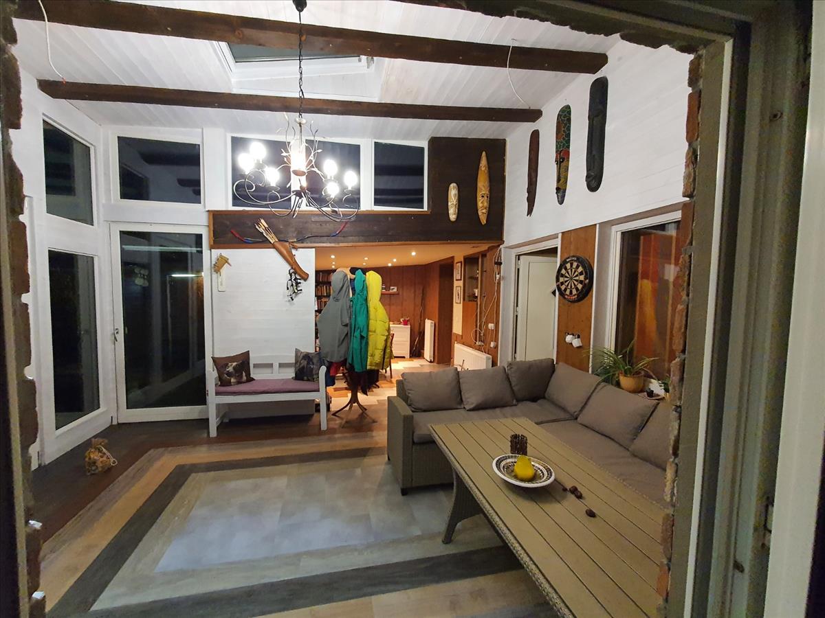 A 92 m²-es, 4 szobás ingatlan túlnyomórészt tégla szerkezetű, melyet könnyűszerkezetes bővítéssel egészítettek ki.