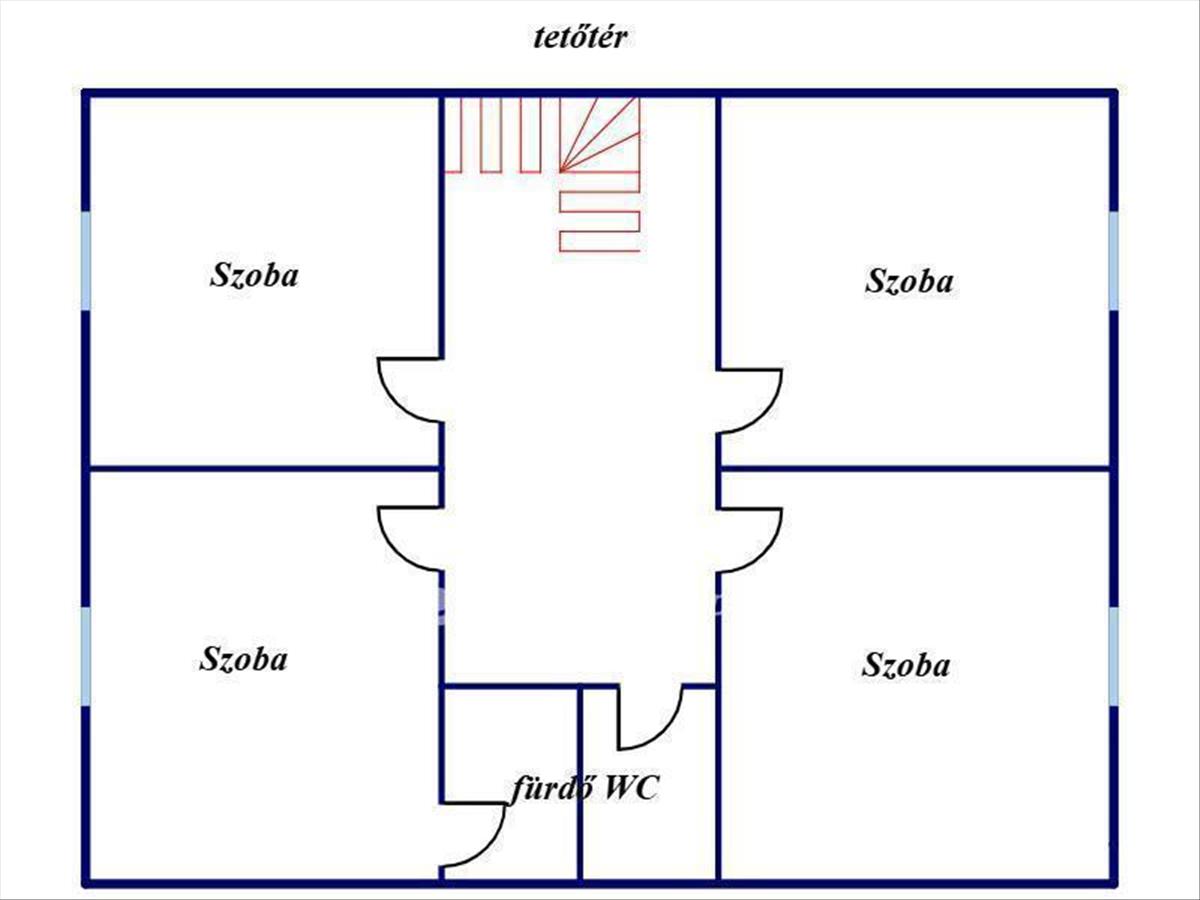Tetőtér: 4 újonnan kialakított szoba, kisebb zuhanyzó és mellékhelyiség