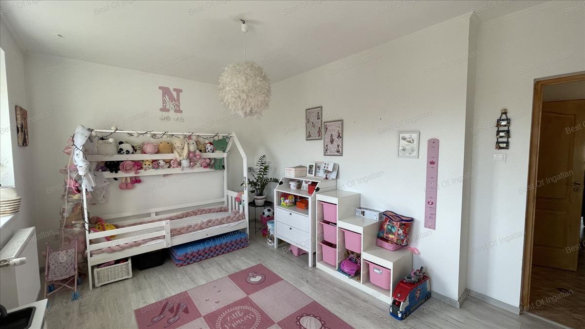 előszoba, közlekedő, hatalmas nappali + étkező + konyha nagy teraszkapcsolattal, 3 hálószoba, fürdőszoba zuhanyzóval és fürdőkáddal is felszerelve, külön wc, háztartási helyiség.