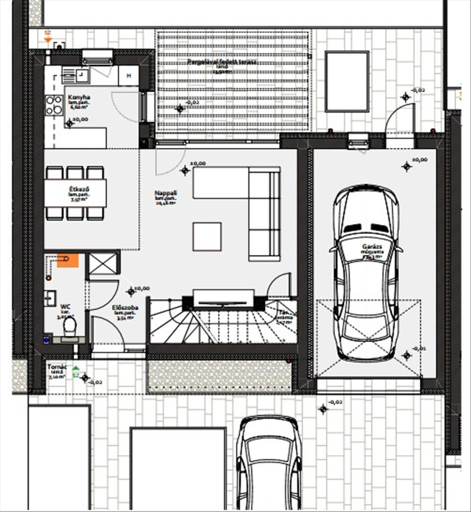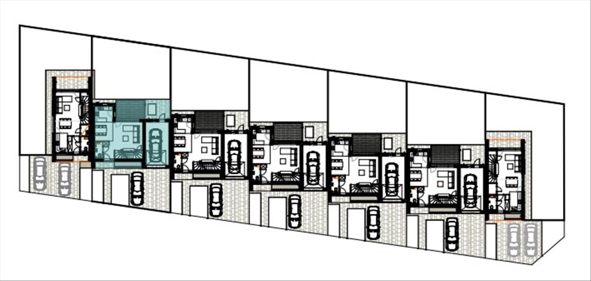Egymás szomszédságában 7 db lakóház kerül kivitelezésre. a lakóházak önálló helyrajzi számmal rendelkeznek (nem társasház). a két szélső telekre épülő lakóházak 2 db kocsibeállóval, míg a köztes lakóházak 1 db garázzsal épülnek.