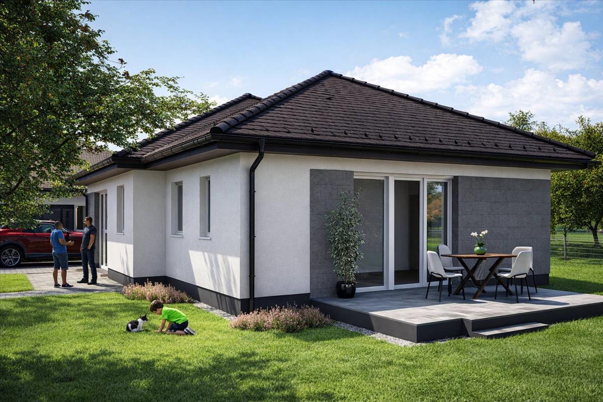 A 437 m2 saját telekhányaddal rendelkező 91, 5 m2-es ház helyiségei: amerikai konyhás nappali, 3 hálószoba, fürdőszoba, wc, közlekedő, háztartási helyiség, előszoba.
