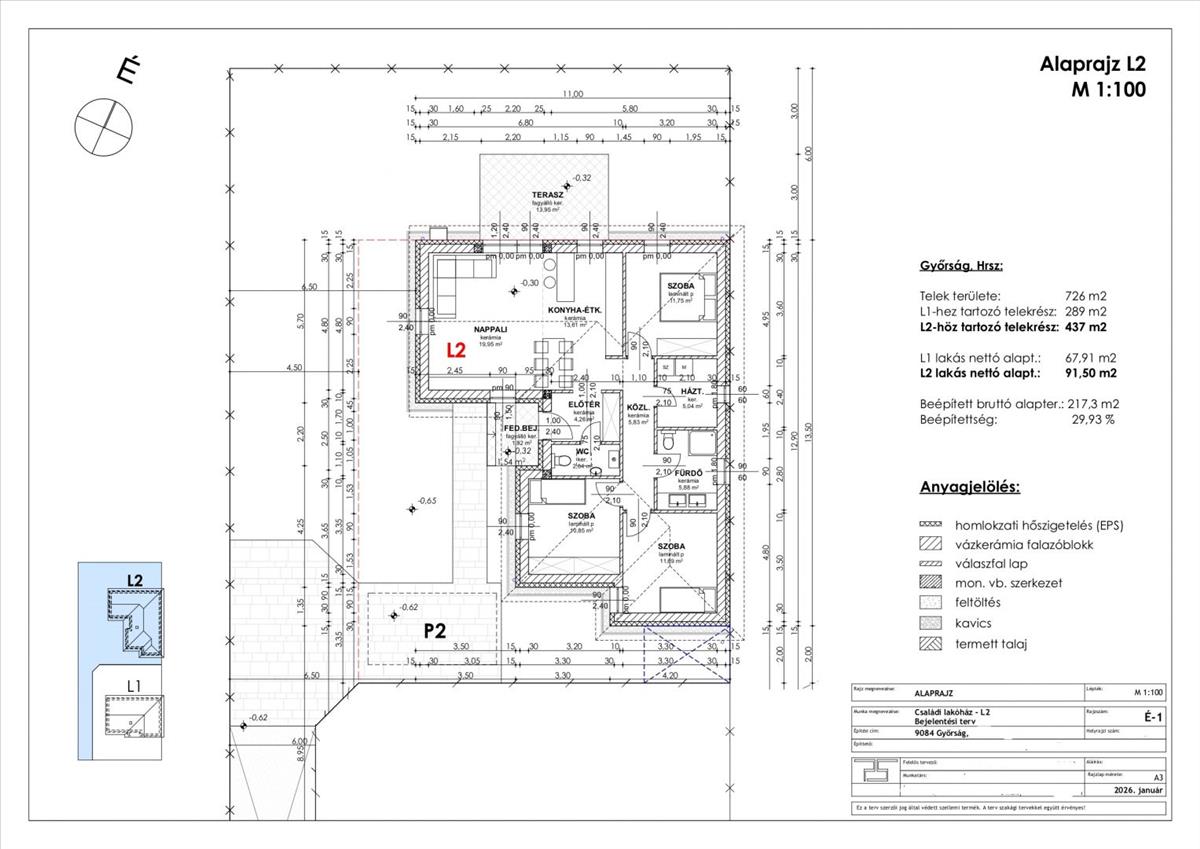 Az ikerház másik, l1 lakása nappali + 2 szoba, 67, 91 m2 54. 900. 000 Forint.