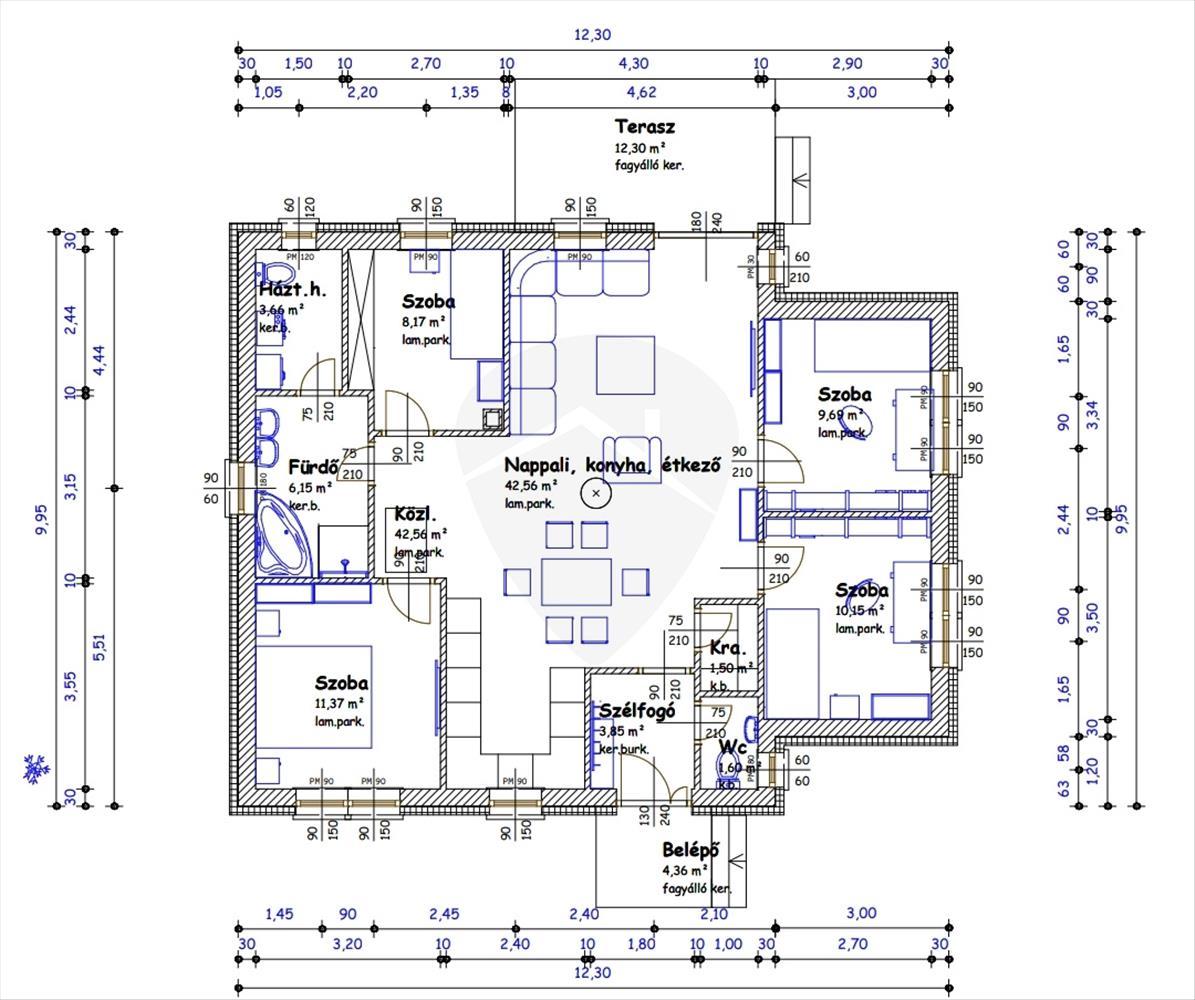 Továbbá az ár tartalmazza a komplett tervezői díjat(gépészet, metszetek, statika, energetika, engedélyek), plusz egy inverteres(hűtő-fűtő) klímát!
