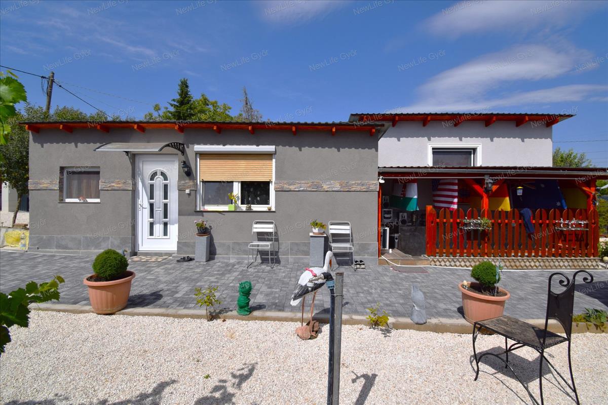 Pázmándfalu közigazgatási területén, Győrság és Halomalja szomszédságában eladó egy bruttó 68 m²-es, könnyűszerkezetes, szigetelt ház egy 953 m²-es, gondozott telken.