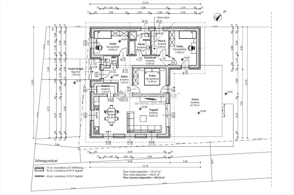 A házak 30 cm-es tégla falazattal és 15 cm-es szigeteléssel rendelkeznek. Ácsolt tetőszerkezettel rendelkeznek cserépfedéssel. a 102 m2-es lakótérhez nagyméretű 47 m2-es terasz kapcsolódik ami szolgálja az egész család pihenését míg az udvaron kényelmes parkolási lehetőség áll rendelkezésedre. a padlófűtést H tarifára kötött hőszivattyú látja el kiegészítve egy 300 literes hmv tartállyal, mely energiatakarékos és környezetbarát megoldás.