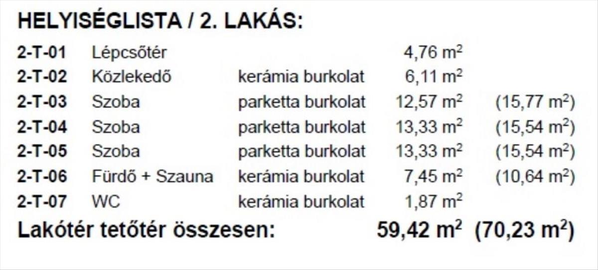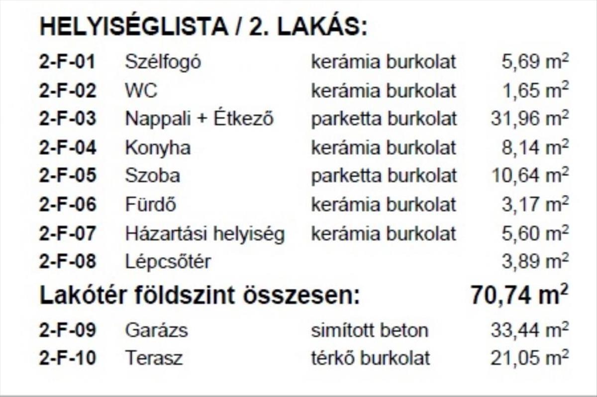 A földszint alapterülete 70, 74 nm , az emelet 69, 84 nm (nettó 59, 12 nm ).