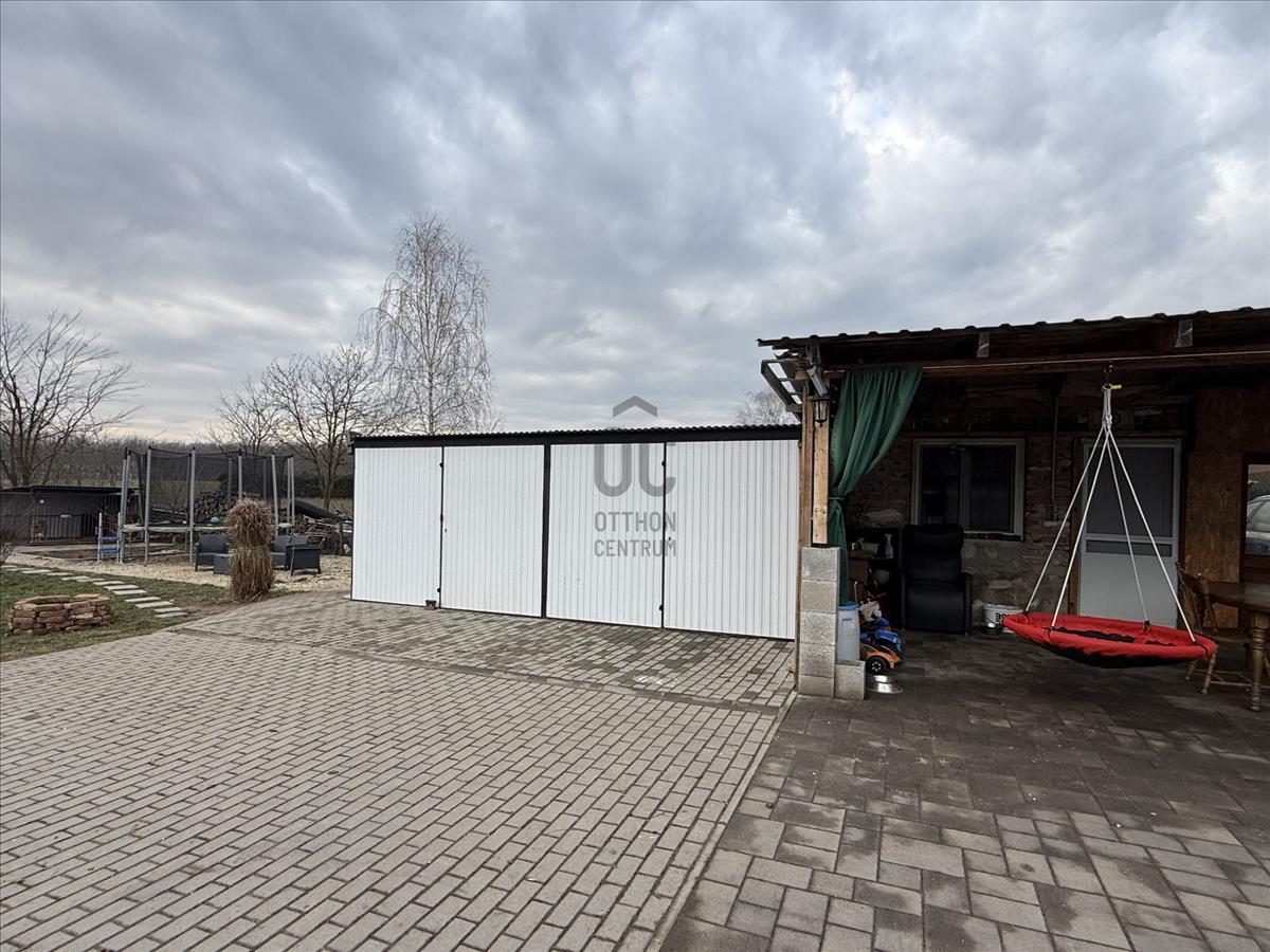 -az udvar térkövezett, és 1 két beállásos lemez garázs is megtalálható