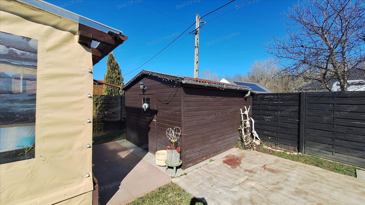 A rendezett privát udvar könnyen kezelhető és karbantartható, ahol kerti csap és faház is rendelkezésre áll.
