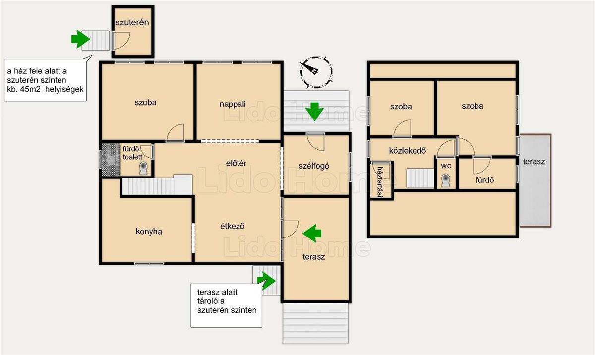 Szuterén szint: 45 m² – akár üzleti célra is alkalmas, külön bejárattal!