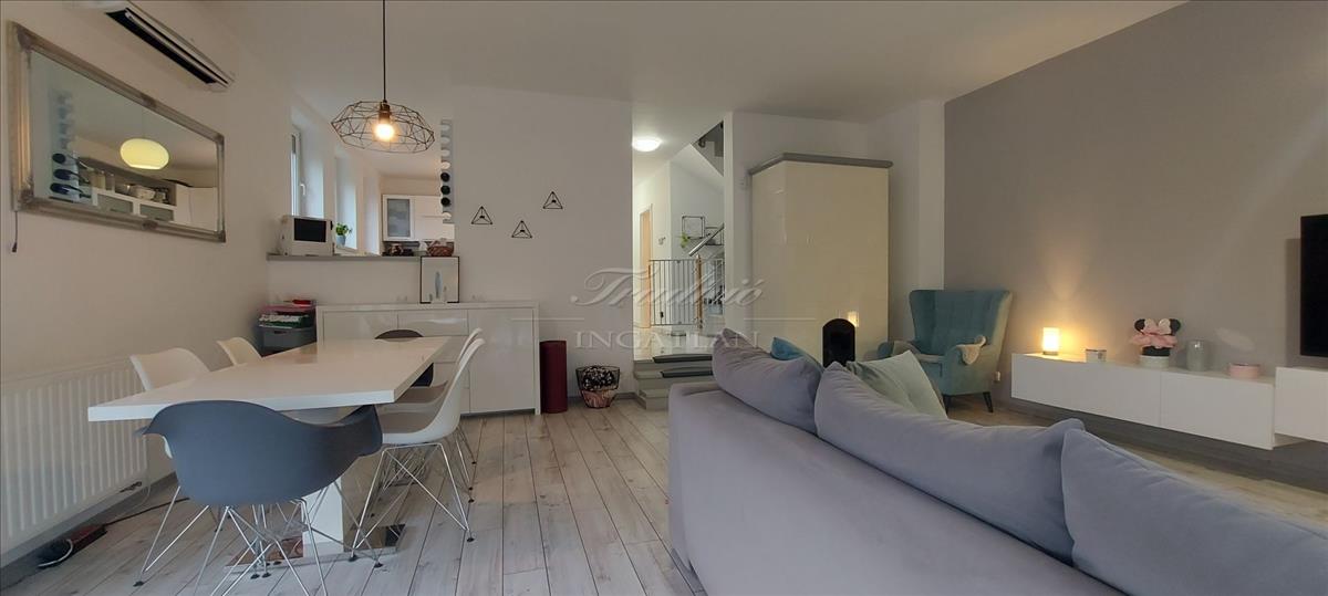 A ház klimatizált, riasztórendszerrel védett, a fűtést radiátorok és gáz kombikazán szolgáltatja, amit egy hangulatos, modern cserépkályha egészít ki a nappaliban – télen is meleg, meghitt légkört teremtve. a műanyag nyílászárók hőszigeteltek, redőnnyel és szúnyoghálóval szereltek.