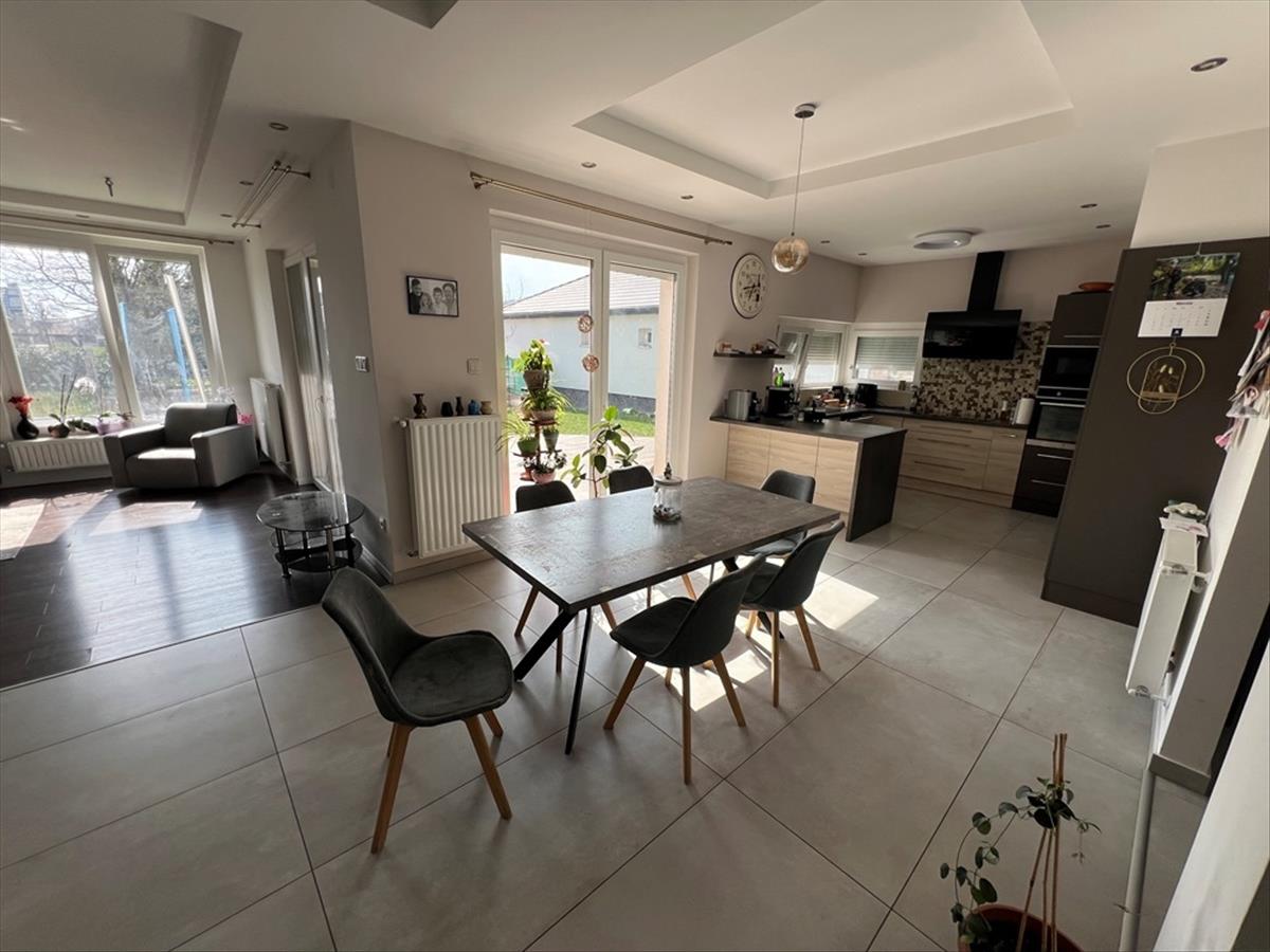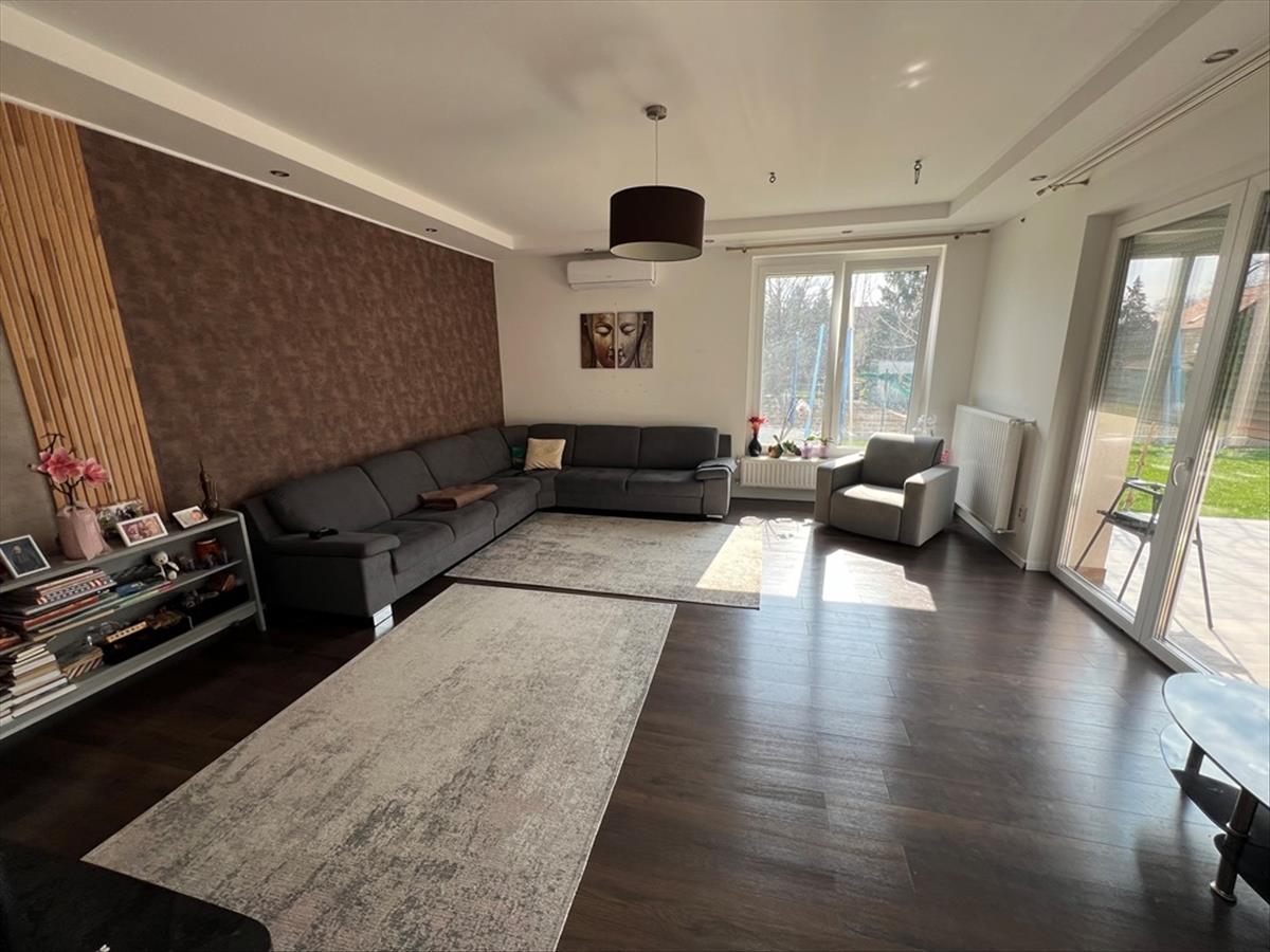 Győrújbarát kedvelt részén, 622 m2-es, összközműves, 29 M széles utcafrontú telken lévő, amerikai konyha - étkező – nappali + 5 hálószobás, továbbá kamrával, háztartási helyiséggel, 2 db fürdőszoba - WC-vel felszerelt, klimatizált, 173 m2 hasznos alapterületű, kiváló állapotú, újszerű, duplakomfortos családi ház, 33, 78 m2-es két állásos garázzsal, 25, 05 m2-es terasszal eladó.