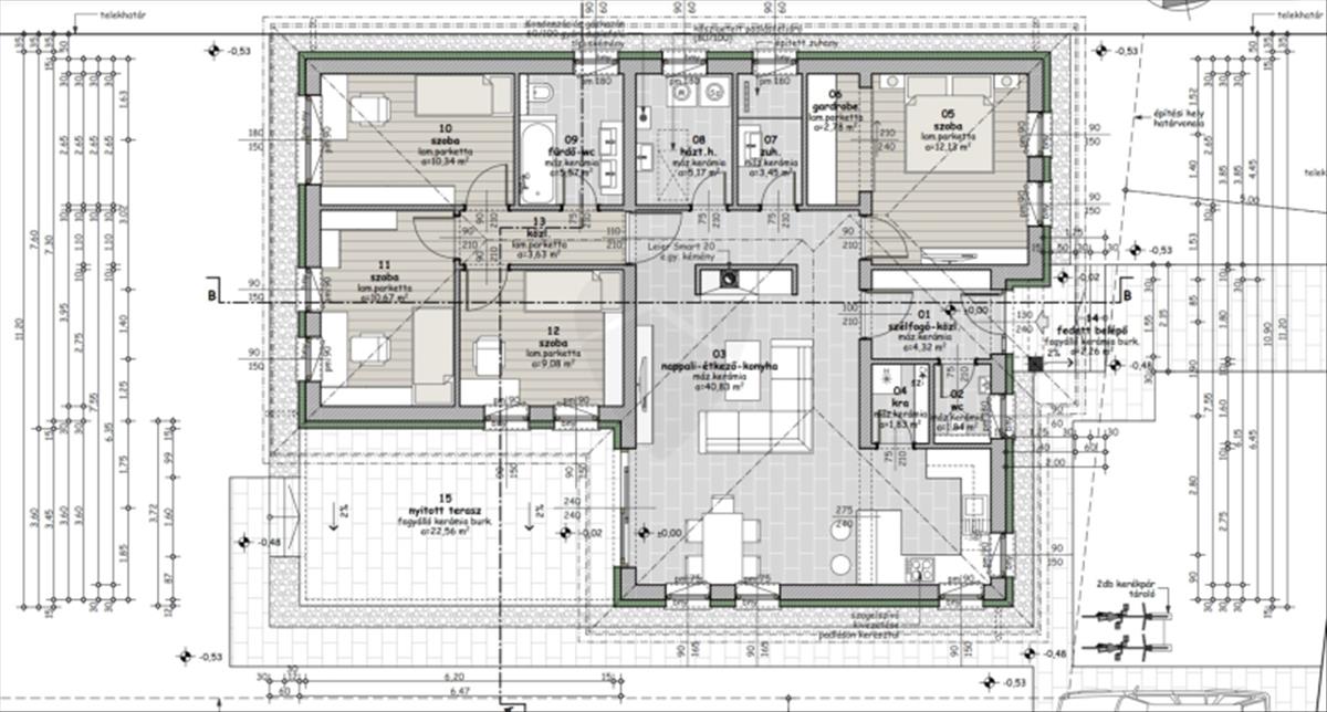 A jelenlegi árajánlatban az otthon melegéről gáz-cirkó kazán gondoskodik, padlófűtéses hőleadással, de a fűtésrendszer is az építtető igényei alapján módosítható!