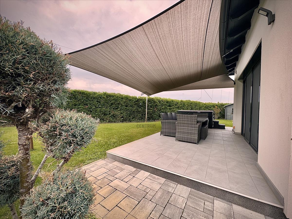 A telek ideális 615nm területű, szélesen elterülő, az utcafronton díszkerttel. a ház előtt pergolával fedett, tágas kocsibeállók, a garázsban pedig 2 autó számára biztosított hely, közvetlen kertből megközelíthető hátsó bejárattal. a telken dísznövények, vakondháló, sövénykerítés, tágas, napvitorlával árnyékolt terasz, valamint egy Wellis Jakuzzi és egy kerti tároló.