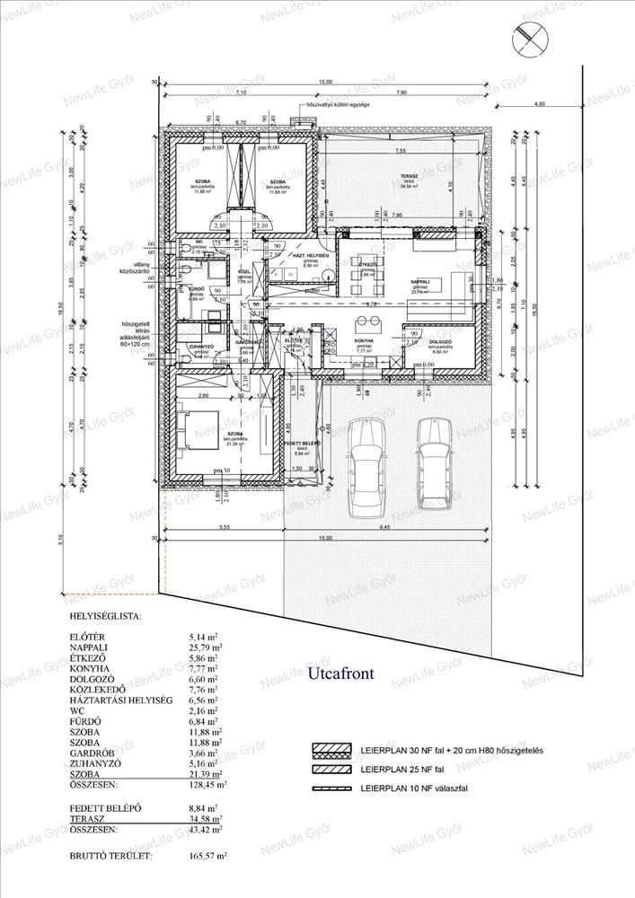 A ház 30nf falazóelemekből épül 12cm-es aljzatszigeteléssel, fafödémes (30cm födémszigetelés), a homlokzatra 20 cm vastag Drywit hőszigetelő rendszer kerül. Nyílászárói 6 légkamrás 3 rétegű hőszigetelt műanyag ablakok a fűtését és melegvíz ellátását hőszivattyú látja el padlófűtéses hőleadással.