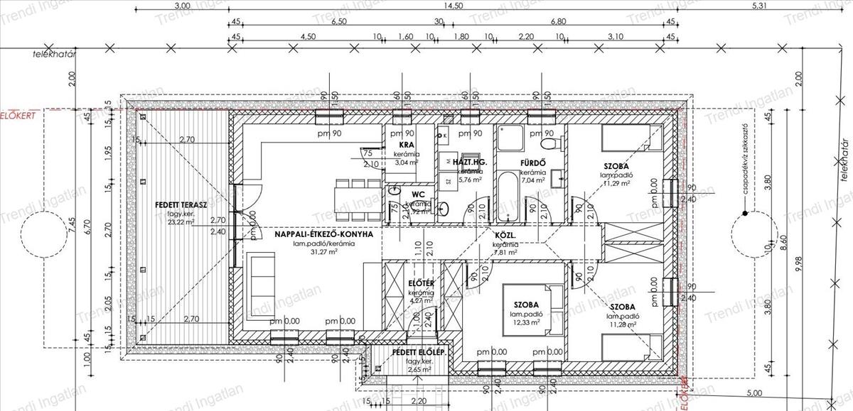 A kiváló elosztású házban amerikai konyhás nappali, 3 szoba, fürdőszoba, háztartási helyiség, külön wc, kamra, közlekedő, előtér található. a nappaliból nyílik 23, 22 nm-es terasz. a ház belső elrendezése készültségi fokhoz mérten még változtatható.