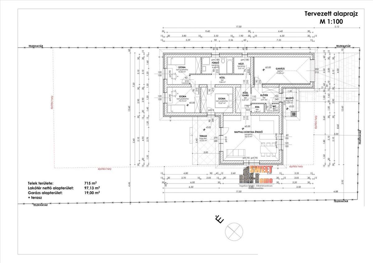 A 120 nm-es ingatlan egy 751 nm-es telken helyezkedik el. Tartozik hozzá egy 19 nm-es nagy terasz, és 19 nm-es garázs. a családi házban amerikai konyhás nappali, 4 szoba, gardrób, fürdőszoba, külön wc, háztartási helyiség, kamra, előtér található.