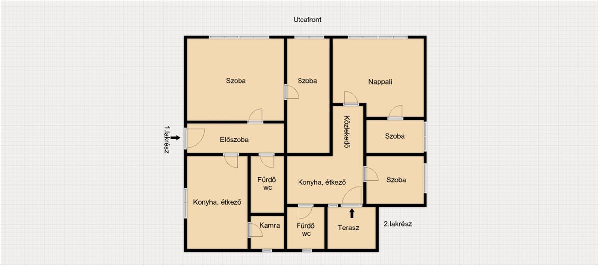 - 1. Lakrész 57 m2, 2. Lakrész 54 m2