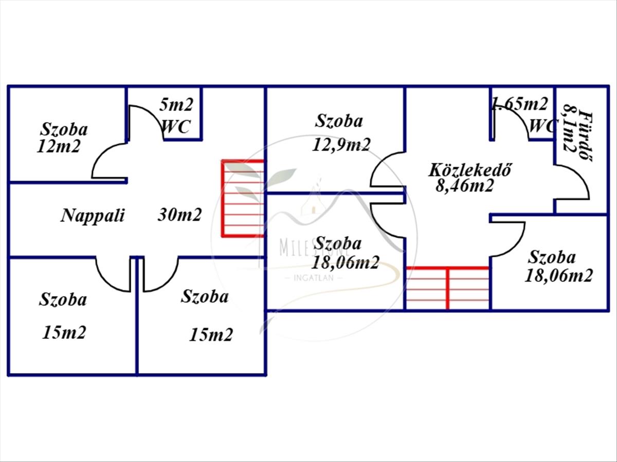 Az ingatlan egy 270 m² alapterületű, kétszintes családi ház, amely egy 749 m²-es sarki telken helyezkedik el, így két utcáról is bejáratot biztosít.